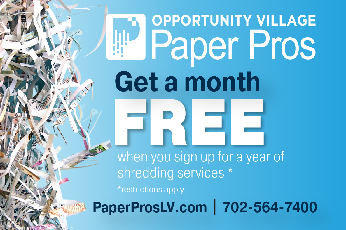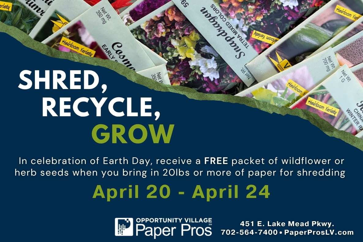 Paper Pros, a division of Opportunity Village, provides document shredding, document scanning, and hard drive destruction. And, as part of Opportunity Village, Paper Pros empowers, employs, and serves people with disabilities in Southern Nevada. By choosing Paper Pros, you’re contributing to an inclusive workforce and a greener planet.